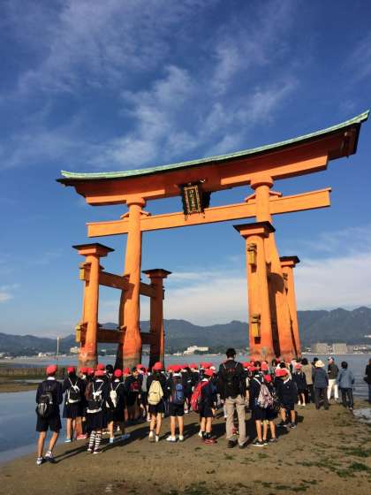 厳島神社に着きました。引き潮で近くまで行くことができました。