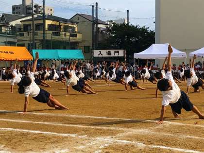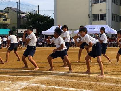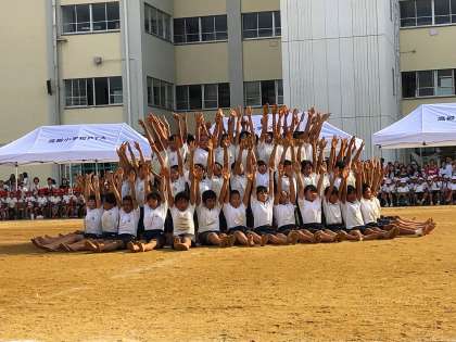 小学校での最後の運動会のフィナーレは6年生による「Be All One -心1つに‐」です。高度なリズムダンスと、指先までピーンと伸びた基本に忠実な組体操。演技の最後には、先生たちをうるうるさせるサプライズも…。