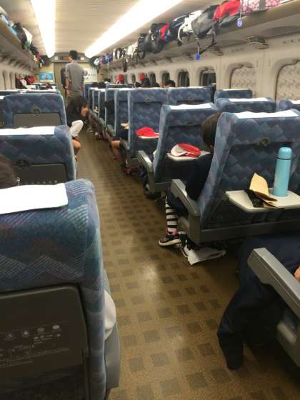 今から大阪に帰ります。うとうとしてる人や、トランプで遊んでいる元気な人もいます。