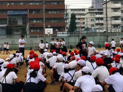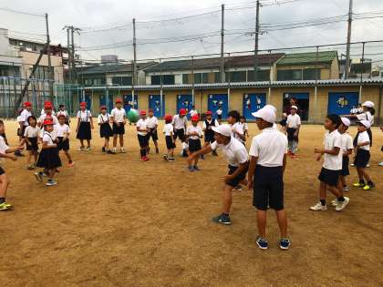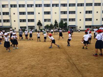 5年生の児童は、ボールを優しく2年生に投げたり、自分が持っているボールをあげたりして、お兄さんお姉さんらしさも見せていました。
