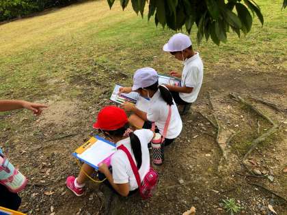 10月11日(金)に、温度・湿度が高く、秋というよりは初夏のような気候の中、2年生は北千里公園に遠足に行ってきました。北千里公園は、大きな遊具はなく、広い芝生が特徴の公園で、現地では周囲にある樹木などから「秋見つけ」をしました。ドングリやススキなど各々が見つけた秋を絵と文で記録していました。