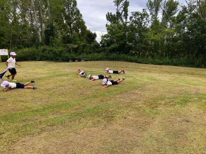 お弁当は、広い芝生で班ごとに食べました。その後は、芝生で、ボール・ドッジビー・大縄跳び・芝生転がりなどをして思い切り遊びました。