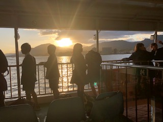 平和記念公園を後に、バスで宮島口まで行き、貸切状態のフェリーで宮島に渡りました。