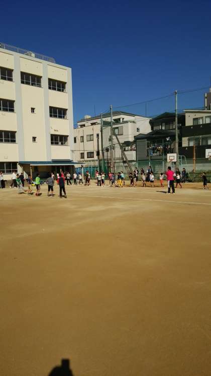 準備運動をした後、校下対抗リレーの選手を決める選考会を行いました。