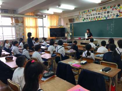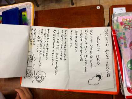 各学年に応じた活動をしていて、この日1年生では、歌詞の意味を考えながら「あしたははれる」を歌い、3.4年生は、友だちをテーマに俳句を作りました。また、5年生では、「いじめをノックアウト」というビデオを見ました。