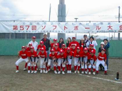 大阪市各区の子ども会対抗のソフトボール大会で「高殿子供会連合」チームが、参加した各区の代表22チームの頂点に立ち、大阪市で優勝を果たしました。日頃の鍛錬の賜物です。おめでとうございます。
