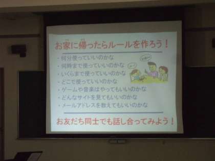 携帯電話、スマートフォン等の使用で、様々なトラブルに子どもたちが巻き込まれています。これらの機器を持っていなくても、インターネットに接続したゲーム機でも、使い方を間違えれば、大変なことになります。このような機器と、いかに上手に付き合っていくかの学習をしました。