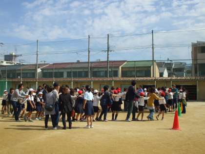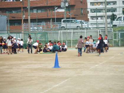 快適な秋空のもと4,5年生と保護者の方が運動場でふれあい活動を行いました。