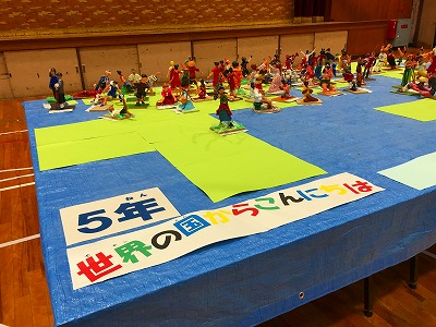 5年生の作品は、紙粘土を使って、世界中の人々の特徴を表現しました。ワールドカップラグビーの影響も国の選択に出ていました。