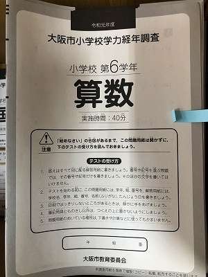 本日と明日の2日間、全市一斉に「学力経年調査」が実施されます。大阪市では3年生以上の児童全員に、国語・算数・理科・社会の4教科の学力テストと、児童の生活実態や意識の調査をする「児童質問紙」を実施することになっています。