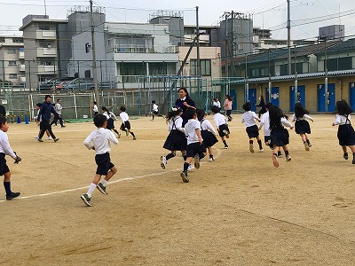 毎年、この時季は寒さに負けず、体力をつけるための耐寒かけ足を実施しています。今年も、2月5日のマラソン大会を最終目標に位置づけ、15分休みには、1.3.5年生と2.4.6.年生に分かれて、元気に走っています。
