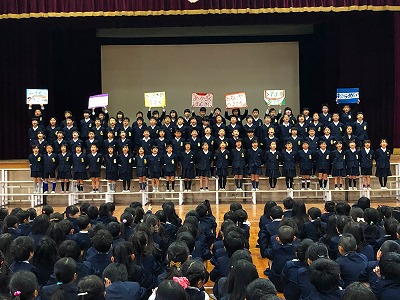 学級休業していた2年生は、2月1日(土)のなかよし集会では、発表ができなかったので、本日児童集会を利用して発表しました。内容は、学年目標を踏まえて、九九の学習などの1年間頑張ってきたことや、平和学習で学んだ平和のありがたさをみんなに伝えました。