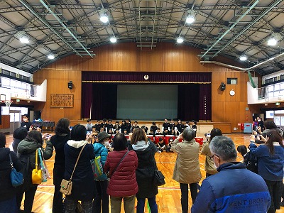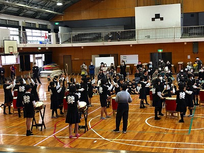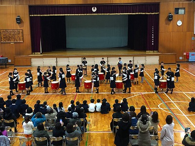 2月12日(水)に太鼓クラブ「絆」の発表があり、保護者の方も多く来られ、1年間の集大成の演奏に聞き入りました。