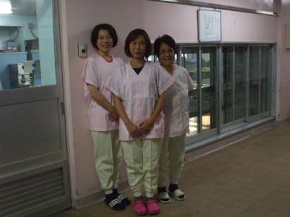 写真は、調理員の小川さん、向平さん、岡本さん(左から)です。これからもおいしい給食、よろしくお願いします。