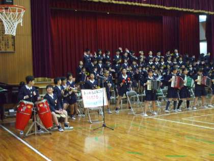 「あふれる喜び『今を生きる』〜forever 瞳さん〜」と題して、6年生は、合奏と合唱を披露してくれました。この3枚の画像は、20日(木)の様子です。