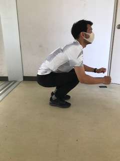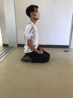1つめは、せいざで じゃんぷです。せいざの しせいから、うでを おおきく ふりながら じゃんぷをして たちます。ぽいんとは てんじょうへ、ぴょんと はねる いめーじで やってみましょう。