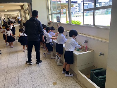 勉強の後には、しっかりと手洗いの仕方についても勉強しました。