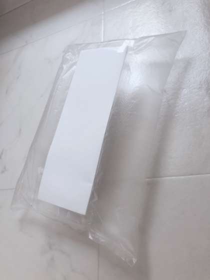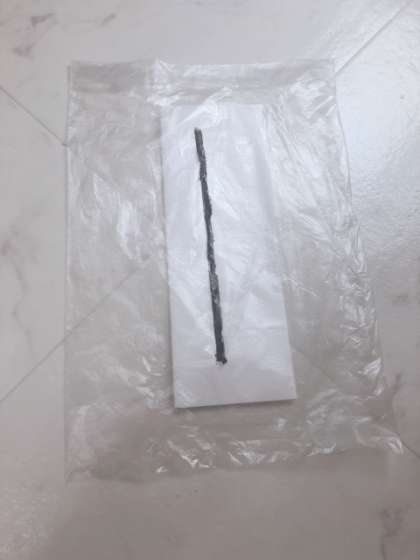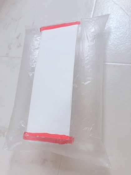 切れたら、ふくろのあいているほうをテープでとめます。写真の赤の線のところがテープをはるところです。