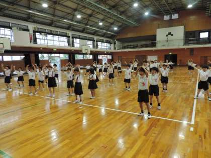 やすみじかんに こうどうにいって みんなで だんすを おどりましたね。