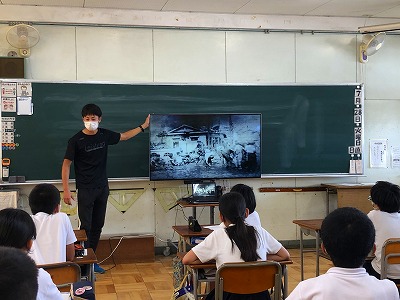真っ黒になったお弁当箱や、火傷や放射能での被害をうけた人の画像も紹介された。子どもたちは、改めて「戦争は起こしてはいけない」と感想を書いていた。