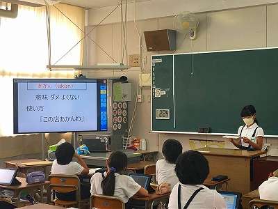 それぞれにテーマに沿った画像をまじえて、わかりやす説明ができていました。大阪弁の発表では、聞いていた子の感想に「大阪弁が上手だった」というのがありましたが、最近はがちがちの大阪弁を使う子が減ってきたようにも感じます。