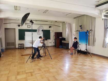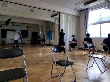 卒業アルバムの写真を撮りました。例年は、標準服の上着を着用して11月の初めに行う撮影なのですが、写真屋さんが11月は、春の修学旅行が秋になる学校が多く、日程が取れないことと、今の状況を考え撮れる時に取っておこうと、この時期になりました。まだまだ暑いので、撮影の時だけ上着を着ました。