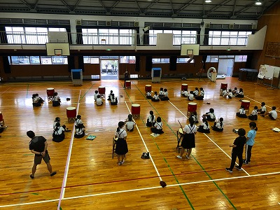 初めての子もたくさんいましたので、バチの持ち方、たたき方の基本から教えていただき、みんないきいきと演奏していました。