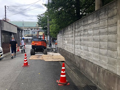 高殿小学校でも、本日から工事が始まり、体育館に近いほうから取り壊しが始まっています。工事は9月中に終わる予定です。子どもたちには、これまでもブロック塀から離れて登下校するように指導していますが、これまで以上に指導を徹底していきたいと思います。