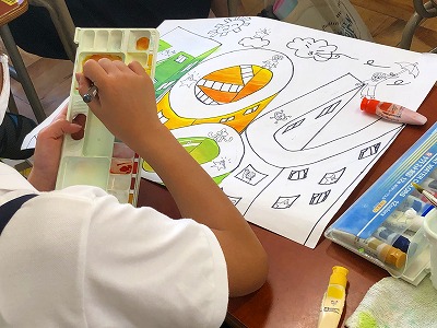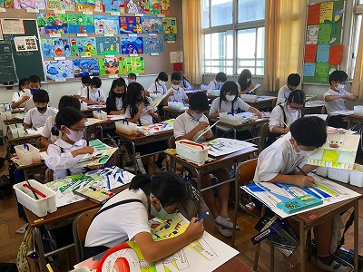 教室内で話し声は全くなく、しーんとした中で真剣に色づくり、色付けに取り組んでいました。