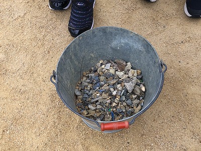 運動場にはそんなに石がないように感じますが、たった数分で写真のようにたくさんの石が集まりました。