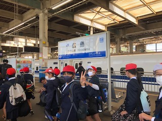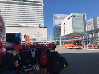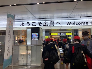 午前10時40分 広島駅に着きました。雲一つない青空です。多くの学校がいます。