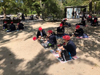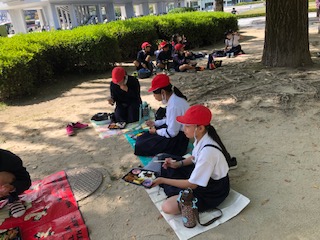 少し距離をおいて、班ごとに食べました。
