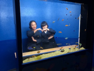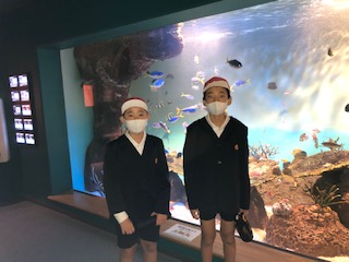 宮島水族館の見学です。高殿小以外にもう一校来ています。いつもなら、生き物に触れるコーナーがあるのですが、今は閉鎖となっていました。好みの生き物の前で、足を止めて見入っていました。