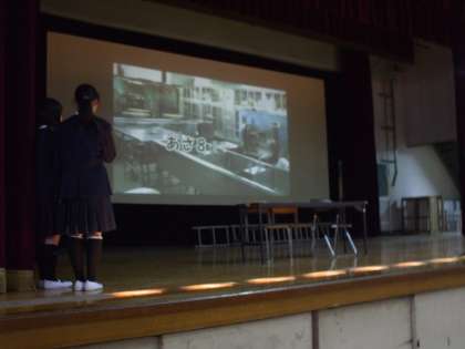 調理の様子を森下先生が撮影、編集したビデオをみんなで見ました。大きなお鍋に大きなしゃもじ、みんな驚きの表情でした。すごい力仕事なんですね。