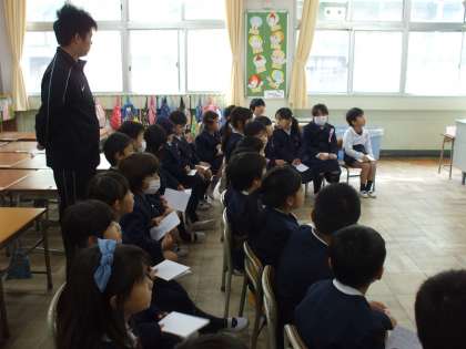 この日、各教室に分かれていますが、3クラスを混ぜ合わしたいつもと違うメンバーです。普段あまり話をしたことがない人と、クイズを通して対話をしています。