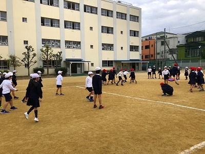 運動委員会が企画し、運営委員会とのコラボで進めました。結果は4年生の圧勝。終わった後は、運営委員会の児童から「教室に入る前に手洗い・うがいをしましょう」と呼びかけがありました。