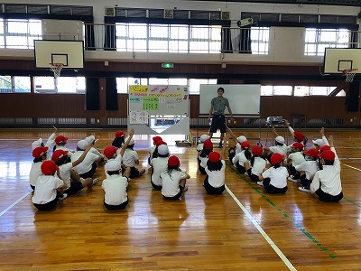 3年生の体育では、表現運動「せんたく物に変身」と題して、洗われていく洗濯物を体全身を使って表現していきました。洗濯機の回り方などもグループで相談しながら、多様な動きを作り出していきました。