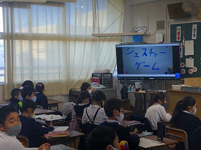 今朝の児童集会は、屋内で全員が集まることができないので、集会委員会の子どもたちが予め撮っておいた動画によるジェスチャーゲームを、各教室ごとにしました。
