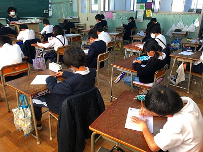 コロナ禍の教室換気は、冬場は寒さ対策が必要となります。昨日、保護者向けのお手紙で、長ズボンやタイツなどを必要に応じて着用してもよいことをお伝えしました。