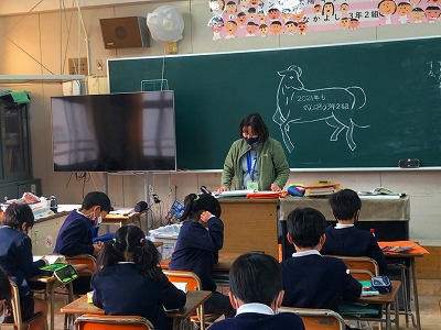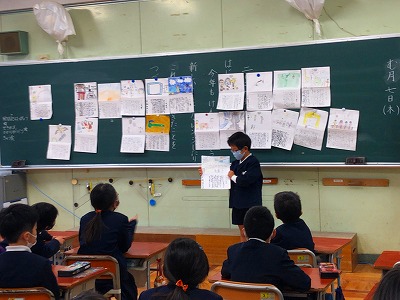 学級では、年の区切りとして係を決めたり、冬休みの出来事を絵日記で発表したり、冬休みの宿題の丸付けをしたり、学級でそれぞれの活動をしました。その後、給食を食べて午後1時30分には下校しました。
