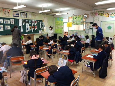 他の学年の先生も参観する中、1年生の子どもたちは、自分の考えをしっかりと発表していました。