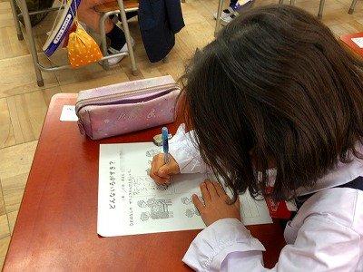 1年生の道徳の授業では、自分たちのランドセルの色から、どうしてその色を選んだのかを発表し合いました。「青にしたら、男の子っぽい色って言われるのが嫌だから、赤にしました」という女の子がいたり、単に「好きな色だから」と答える子もいました。