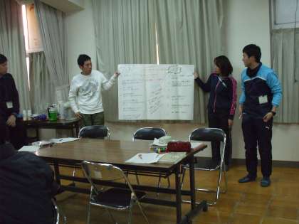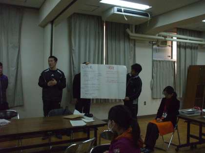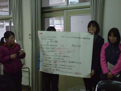 この1年、各学年、1回の研究授業を行いました。その成果と課題について班に分かれて討議しました。そのまとめたものを発表しているところです。