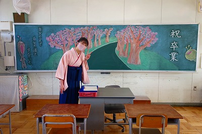 卒業式の前日、夜遅くまで6年生の3つの教室では、卒業式の朝、教室に来た子どもたちを迎えるために、黒板にメッセージや絵を描き込んでいました。当日の朝、教室の入った子どもたちもきっと驚きと喜びを覚えたことでしょう。