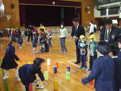 中学校から、お客様も来られていました。わなげをしてもらいました。