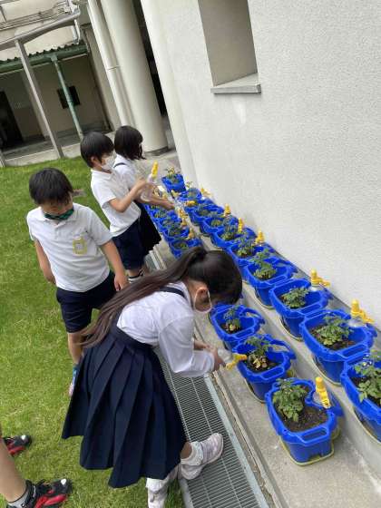 朝、登校してから準備ができた子は、意気揚々と水をあげに行っています。責任感をもって大事に育てるんだという気持ちが感じられ、頼もしく成長している姿に嬉しく思いました。
