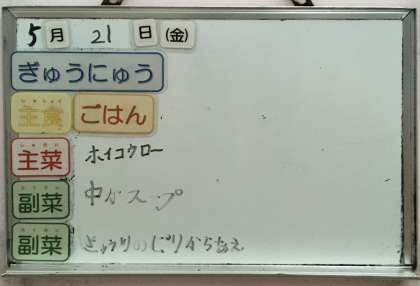 今日のメニューは、ごはん、ホイコウロー、中かスープ、