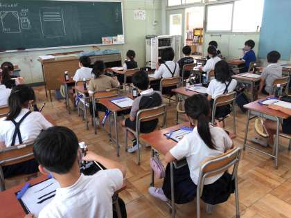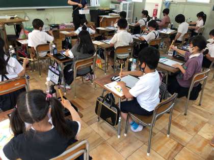 集中して取り組んだので、手や机に墨がつく子もいましたが、みんな初めての習字を楽しく学習できました。次回から文字を書くのが楽しみですね。