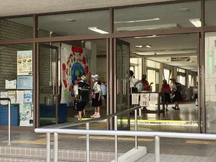 その素晴らしい「子ども平和のつどい」共同作品「平和の絵」を玄関ホールに展示しています。また、全校から公募された「原画」も保健室前廊下に展示しています。学校へお越しの時は、ぜひご覧ください。