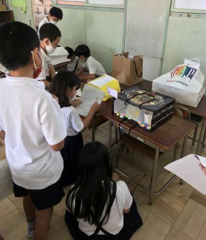 完成後は、友達の作品を鑑賞し「これどうなってるの?」など